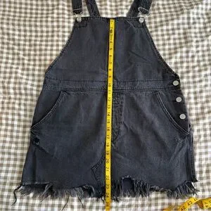 The perfect distressed black denim overall mini dress to add to your closet! Pair it with a flannel, fishnet tights, and combat boots for the ultimate 90s grunge look or keep it casual with a plain white tee and Chucks.