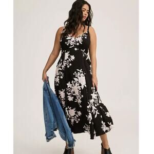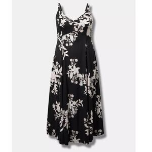 Torrid Tea Length Trapeze Dress Alessa Floral Black Vacation Beach Size 3X EUC