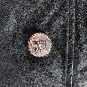 Chic black quilted skirt with gold button accents. A-line silhouette for a flattering fit. Perfect for stylish outings.