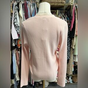 LOFT, Ann Taylor, Pink, Blush, Pastel, Cardigan, Sweater, Knit, Ribbed, Lace Trim, V-Neck, Button Up, Button Front, Feminine, Classic, Slim Fit, Spring, Rayon Blend, Lightweight, Soft, NWT