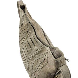 NANETTE LEPORE Bone Suede Hobo Shoulder Bag with Intricate Woven Design