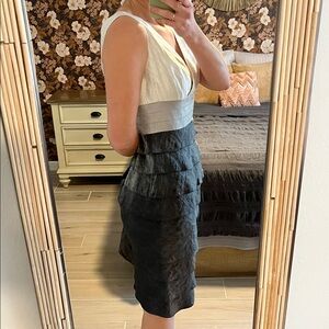 Adrianna Papell Black and White Layered Midi Dress