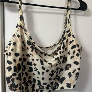 Aerie Leopard Print Longline Scoop Bikini Top - Size Large (L/G)