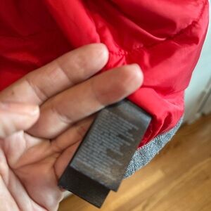 Bold red jacket by The North Face. Features a sleek design with a comfortable fit.