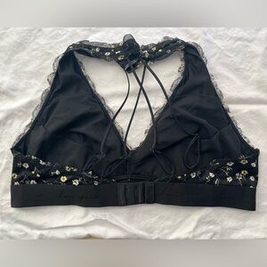 Elegant black bralette with lace details throughout. Perfect for everyday wear. Features yellow floral design.