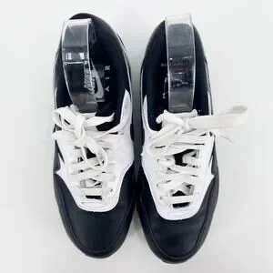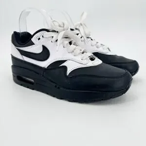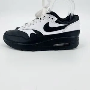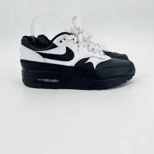 NIKE By You Air Max 1 Premium womens sneakers in Sail Dark Obsidian black and white. Low top custom black and white shoes. Size 6.5. Excellent used condition. No flaws detected.