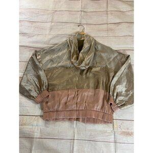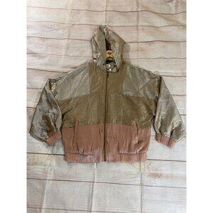 Zara Basic Women's Metaic Color Block Light Weight Full Zip Hooded Jacket - Medium