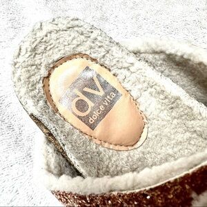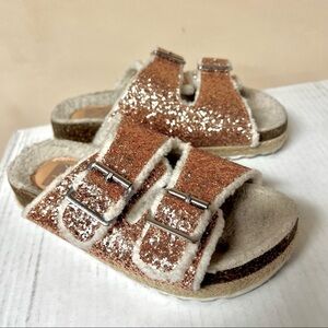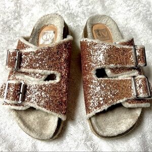 DV BY DOLCE VITA Girl's Carlina Glitter Faux Fur-Lined Espadrille Slides size 2