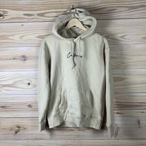 Hollister California Hoodie Mens Small Beige Embroidered Surf Y2K