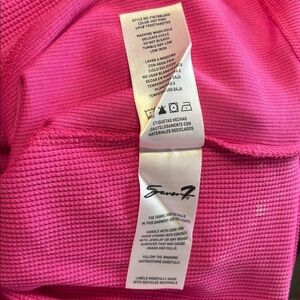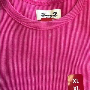 SEVEN 7 Women’s Waffle Crewneck/Stonewashed Mottled Dye/Thumb Holes/Hot Pink