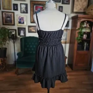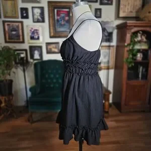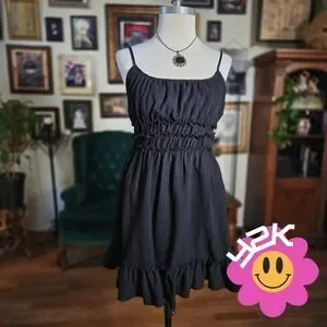 Vintage Y2K Liberty Love Black Ruffle Spaghetti Strap Smocked Waist Mini Dress