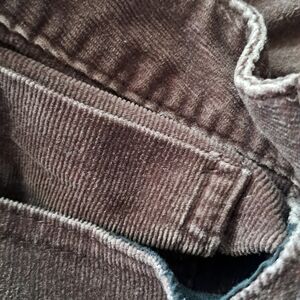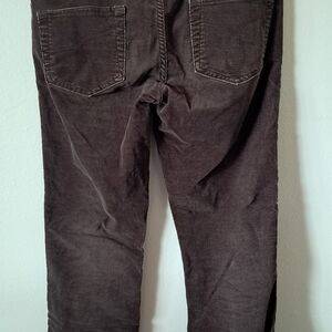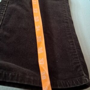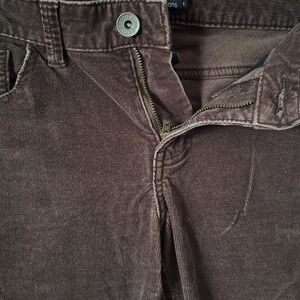 Elegant dark brown corduroy trousers by Calvin Klein. Features include back pockets and a sleek design.
