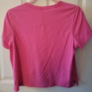 Bright pink tee with short sleeves. Soft fabric for everyday comfort.