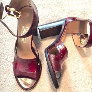 Salvatore Ferragamo Naula cherry Leather Gancini Buckle Heel Sandals Womens 5