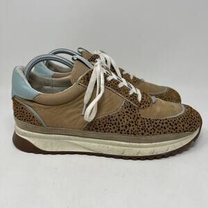 Madewell Kickoff Trainers Sneakers in Spot Dot Calf Hair and Nubuck Style #NA848 Lace Up Casual Tan Beige Light Brown Leather Upper