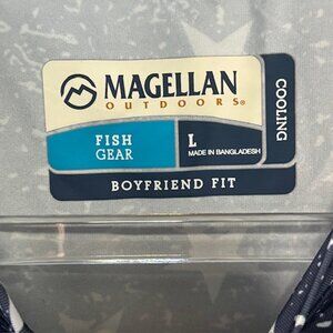 Magellan Outdoors Shirt Fish Gear L Boyfriend Fit Blue White Patriotic Holiday