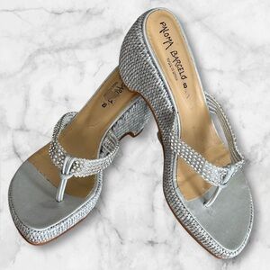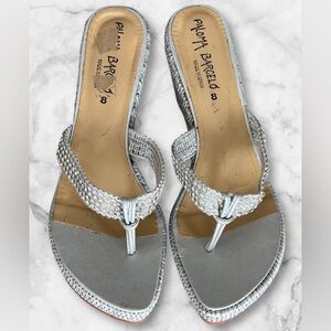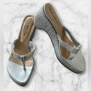 Paloma Barcelo Silver Rhinestone Thong Wedge Platform Sandals Euro 38 US Size 8