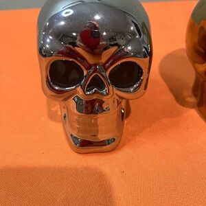Enhance your space with this striking silver and gold skull decor set. Perfect for adding a modern touch to any room.