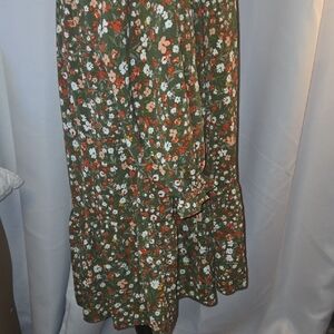 BCBG Floral Long Sleeve Dress in Green and Orange