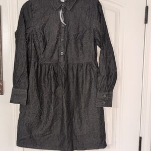 Elegant charcoal dress with subtle texture. Ideal for versatile styling.