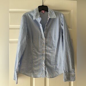 Lilly Pulitzer Blue & White Striped Ruffle Button-Down Shirt Size 14