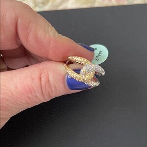 This exquisite ring showcases a captivating blend of gold and silver, embellished with shimmering crystals. A perfect accessory to elevate your style.