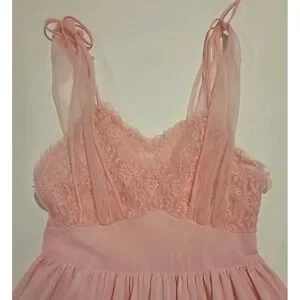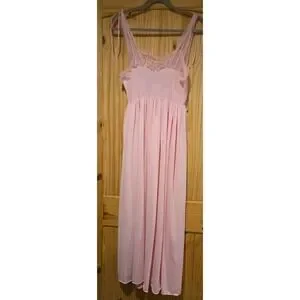 VTG GILEAD Pink Nylon & Lace Full-length Nightgown Lingerie Size 34