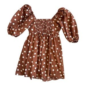 Abercrombie Emerson Ruched Puff Sleeve Brown Polka Dot Mini Dress X-Small NWT