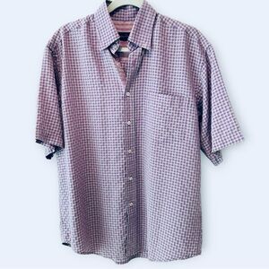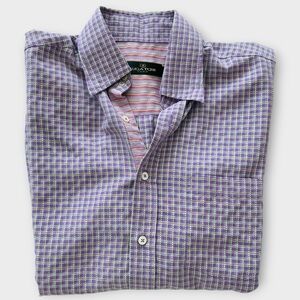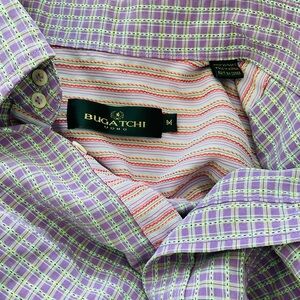 Bugatchi Mens Purple Plaid Button Up Shirt Medium Short Sleeve Tailored Fit