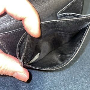 Elegant black leather wallet with iconic embossed logo. Perfect for any occasion.
