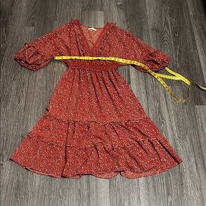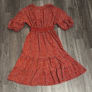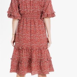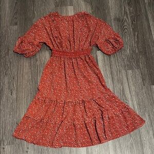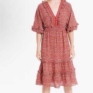 Max Studio Orange Midi Dress with Ruffled Tiered Design