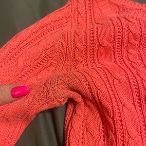 American Eagle Outfitters Bright Coral Cable Knit Sweater