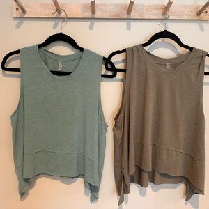 Chic muscle tees in mint and olive. Perfect for active days.