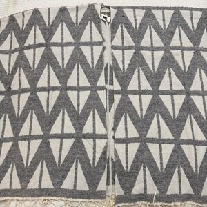 NWT World Market Geometric Fringe Cape Wrap Poncho Gray And White One Size