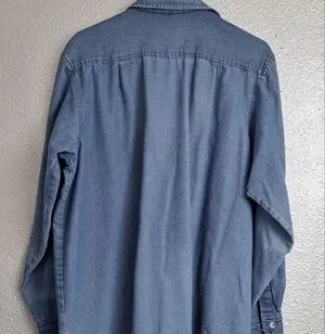collar & button down, embroidered floral design on the top half, 4.5" slits at the hem line, long sleeve button cuffs, measures pit to pit 24" sleeve 23" length 27"