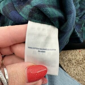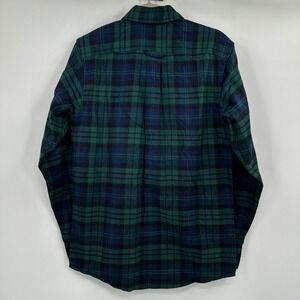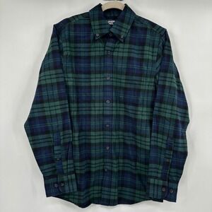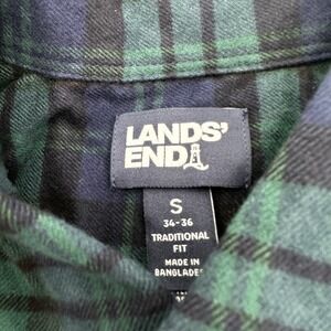 Lands End Flannel Shirt Men's Size Small Traditional Fit Green Blue Plaid Button