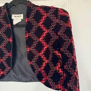 Nu Mode Vintage Black and Red Cropped velvet sequins Puff Shoulder open bolero