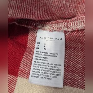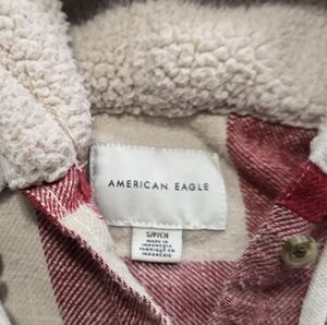 American Eagle Red Plaid Sherpa Hooded Button Up Womens Small