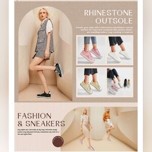 •Elevate your style with a rhinestone- embellished outsole. Women's fashion sneakers perfect for important occasions like parties, shows
