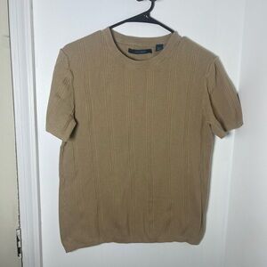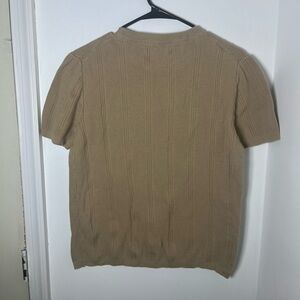 Stylish tan short sleeve knit sweater. Perfect for casual wear.