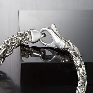 Lobster clasp, sterling silver Byzantine bracelet.