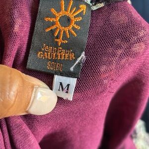 Rich purple fabric featuring a distinctive orange label. Iconic Jean Paul Gaultier design.