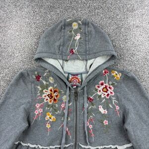 Johnny Was Zuzu Tiered Hoodie Women's Medium Gray Floral Embroidered Pullover