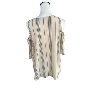Gently Used in Excellent condition Lauren Conrad off the shoulder top. Tank top like straps with short sleeves. Blue and Tan/cream color.