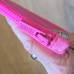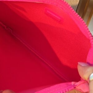 Such a stylish bag. Perfect for swimsuits. Measures approximately 11" x 9". In great condition except for a small mark on front...see pics.