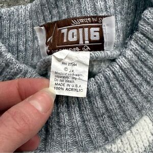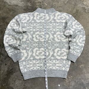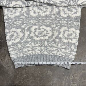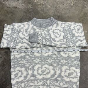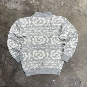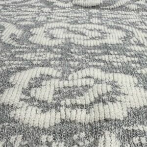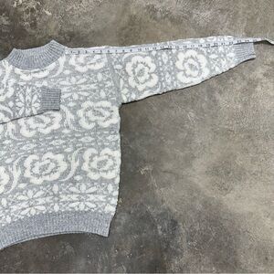 Vintage Jolie raised floral knit sweater in gray and white. Made in the USA. Acrylic knit with textured floral pattern. No size tag, but fits like a Women’s Medium based on measurements.