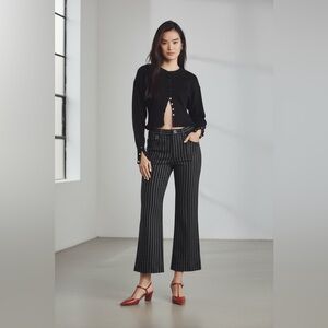 Derek Lam - Navy Velvet & Cotton Striped Crop Flare Trousers Sz 2.
