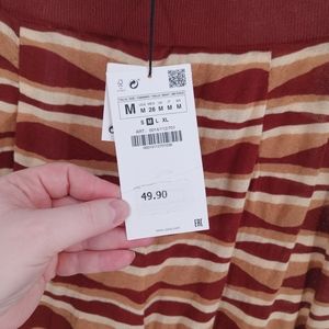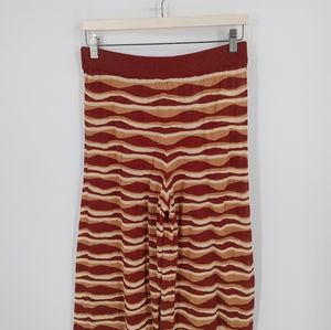 Stylish flare pants with a bold red and cream pattern. Comfortable fit. Perfect for a chic look.