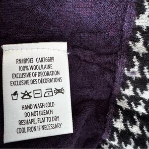 Luxury meets comfort in this classic Robert Graham 100% wool quarter-zip sweater. Deep plum/purple color with subtle cable knit texture. Signature RG details include branded zipper pull, contrasting houndstooth lining at the cuffs and collar, and the signature “Knowledge Wisdom Truth” red tag inside.