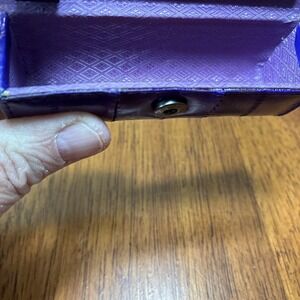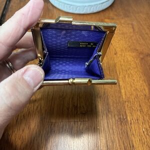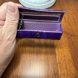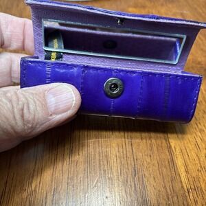 This vintage Eel Skin Coin Purse and Lipstick Case in a lovely purple color is a unique accessory for women. Made from authentic eel skin material from South Korea, this original piece adds a touch of elegance and sophistication to any outfit. Perfect for storing coins, cash, and lipstick, this compact set is a stylish and practical addition to any vintage-inspired wardrobe.